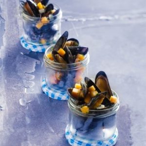 Mosselen met pompoen, bieslook en blonde leffe